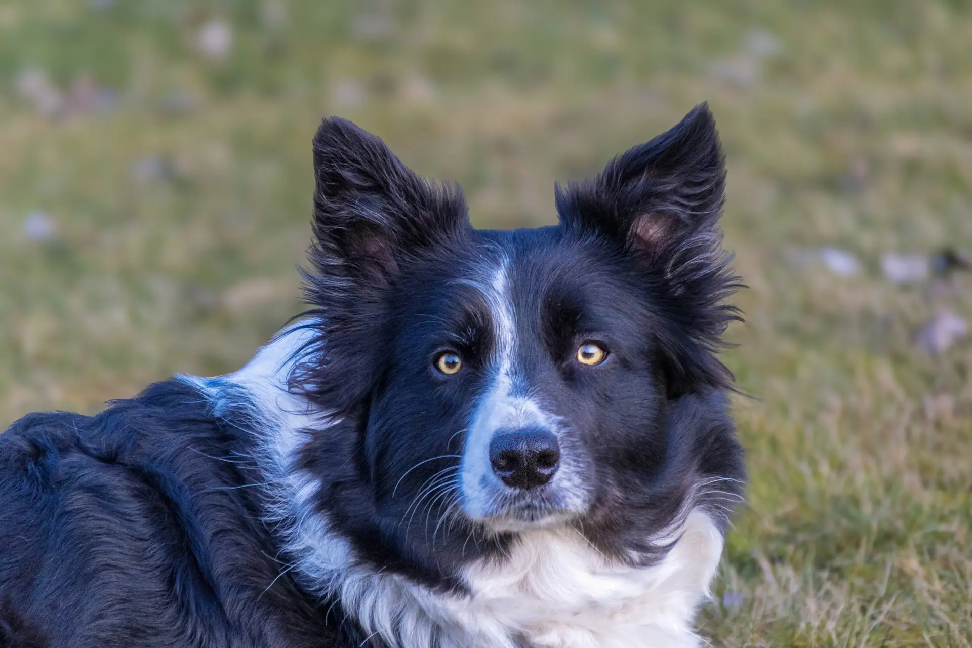 Emotionales Hundeportrait: Hund liegt entspannt im Gras. Fotografiert bei Anke’s Fotoshooting in Großheide.